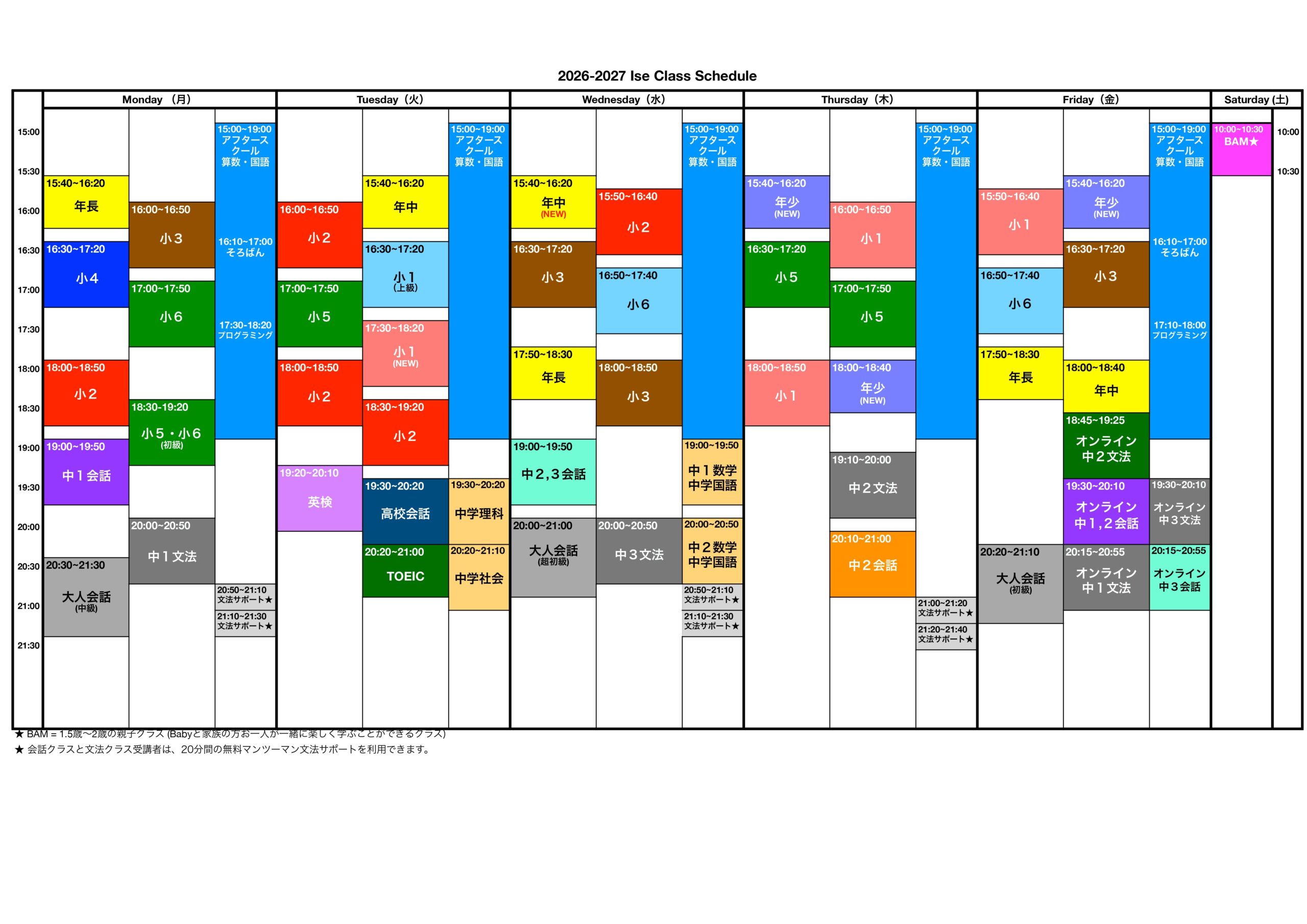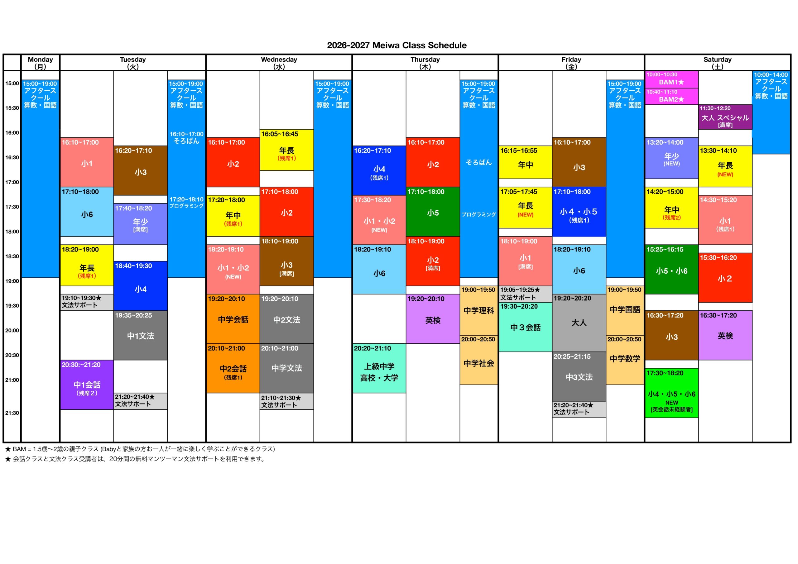 | 授業時間 | 授業料 | 定員/クラス |